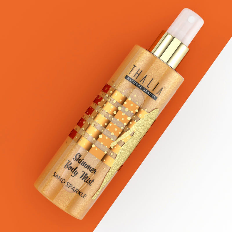 Immerse yourself in the unique beach atmosphere with exotic fruits and oriental flowers! The warm and simple breezes of the beach transform into a seductive fragrance composition with notes of coconut, peach, musk and vanilla. Thalia sand sparkle body spray nourishes the feeling of freshness whenever you want, in the lightest and most refreshing way, while the easy-to-use spray pump provides an excellent area of effect. It is in your hands to have a brighter and more glamorous skin with the bronze glitter in the content.