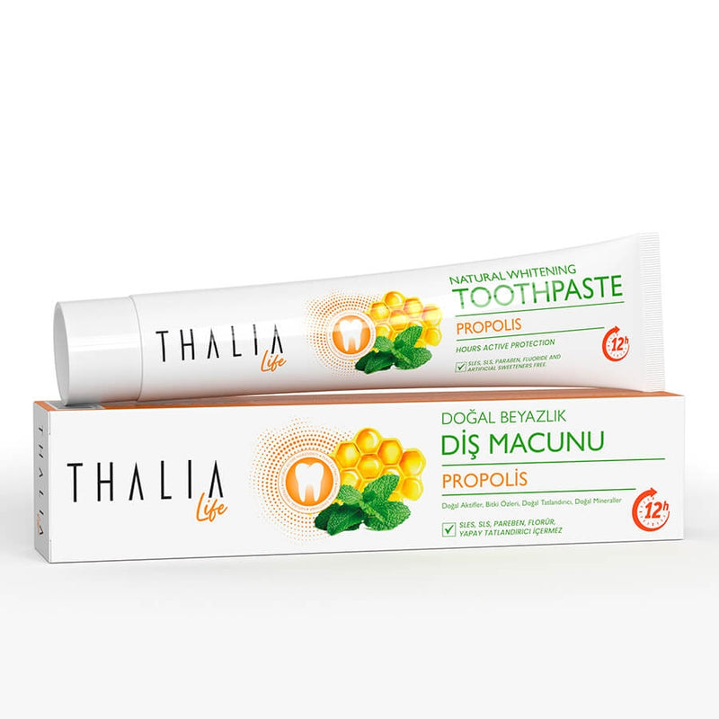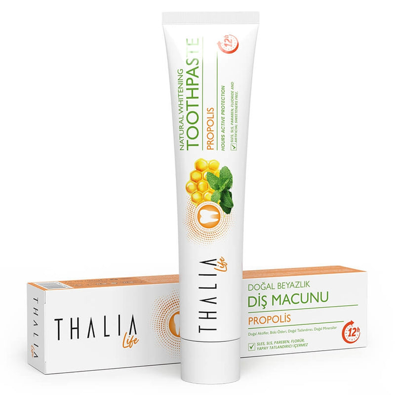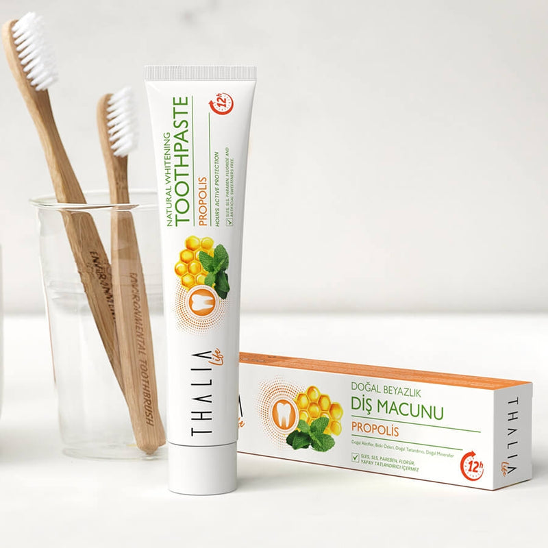La propolis dans son contenu joue un rôle actif dans la restauration de la blancheur naturelle de vos dents et dans le soin des gencives. Son contenu empêche les bactéries de la bouche d'accumuler de la plaque sur l'émail des dents. Il aide à prévenir la formation de caries dentaires en inactivant les enzymes qui causent la carie dentaire. De plus, il prévient la formation de taches dentaires en enduisant les dents de ses micro-composants naturels et garantit que vous obtenez des dents blanches naturelles. Par conséquent, il est idéal pour les soins bucco-dentaires dont vous avez besoin pendant la journée. Vous pouvez l'utiliser dans vos soins du matin et de l'après-midi pour des dents éclatantes.