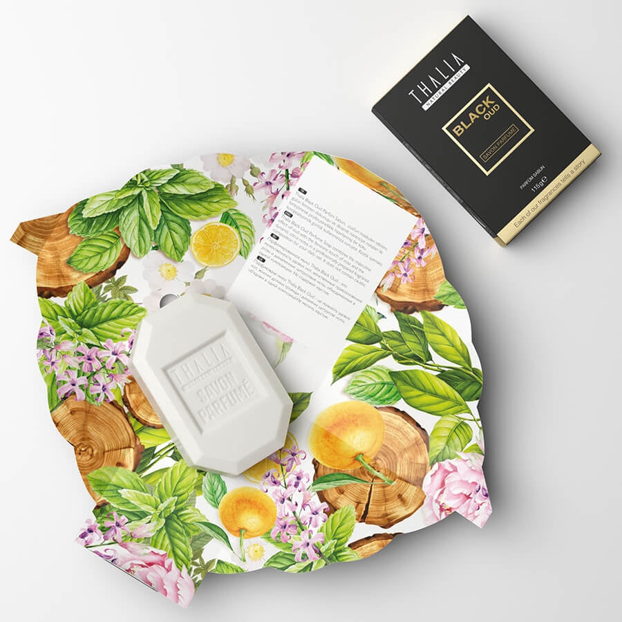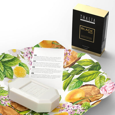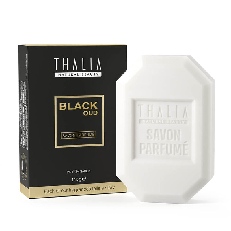 Thalia Black Oud Parfumzeep combineert het mannelijke effect van oudh met de vrouwelijke toets van roos en dynamische citrustonen en biedt het aan voor dagelijks gebruik in een professioneel bereide geurcompositie.
